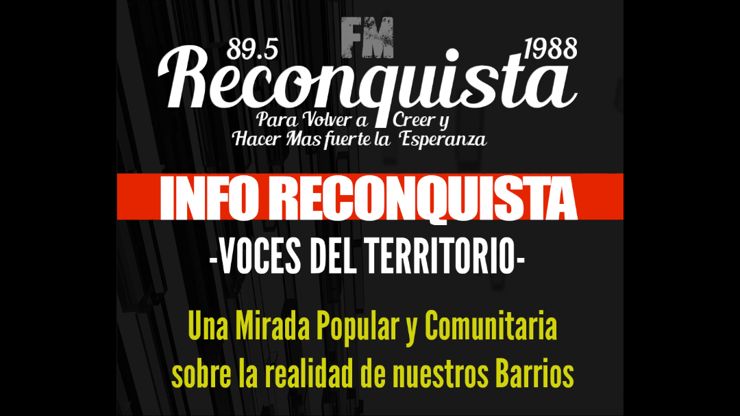 “Info Reconquista” un noticiero íntegramente producido por la radio en formato de 15 minutos con varias salidas durante la semana. Los diferentes programas también son reproducidos en las radios Zonales y en nuestro canal de Youtube. La monopolización de la información, el sometimiento de las audiencias a las noticias dominantes, la falta de contenido local, generan la necesidad de cubrir ese espacio que los grandes medios no abarcan; el de las Noticias de Nuestros Barrios.Info Reconquista nace con el objetivo de informar a nuestras audiencias sobre las noticias que nuestros territorios tienen, tomando y haciendo participe a corresponsales de los diferentes barrios, localidades y partidos donde la Radio tienen alcance. Info Reconquista -Voces del Territorio establece una Mirada Popular y Comunitaria sobre la realidad de nuestros Barrios. El Noticiero es desarrollado semanalmente por un equipo especial del área de Noticias de la Radio : Rafael González, Raúl Bermúdez, Jorge Wagner, Eva Ávila, Roberto Montenegro, Leo Vázquez. El Noticiero se puede escuchar todos los días por FM reconquista 89.5 Mhz a las 9, 12 y 18 hs. Además los programas se suben al Youtube FM Reconquista